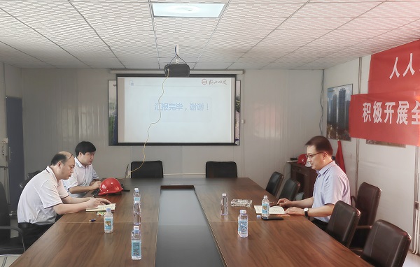 在项目会议室,董富强首先听取了项目部关于进度、安全、质量、文明施工等情况的汇报。他边听边记,边听边问,“施工进度怎么保证?”“创优目标如何实现?”……他问得很细,记得认真,反复强调施工任务要再细化,务必卡紧节点,创优工作要再深入,务必措施到位。在项目施工现场,董富强实地了解工程进展情况并进行指导。正值全国“安全生产月”活动开展之际,董富强要求项目部提高政治站位,压紧压实责任,落细落实管控措施,确保施工安全。